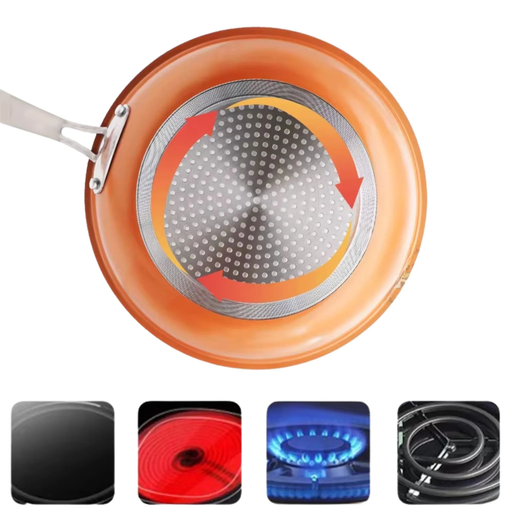 The CopperPan Deluxe works with all cooktops — gas, induction, electric, or ceramic.