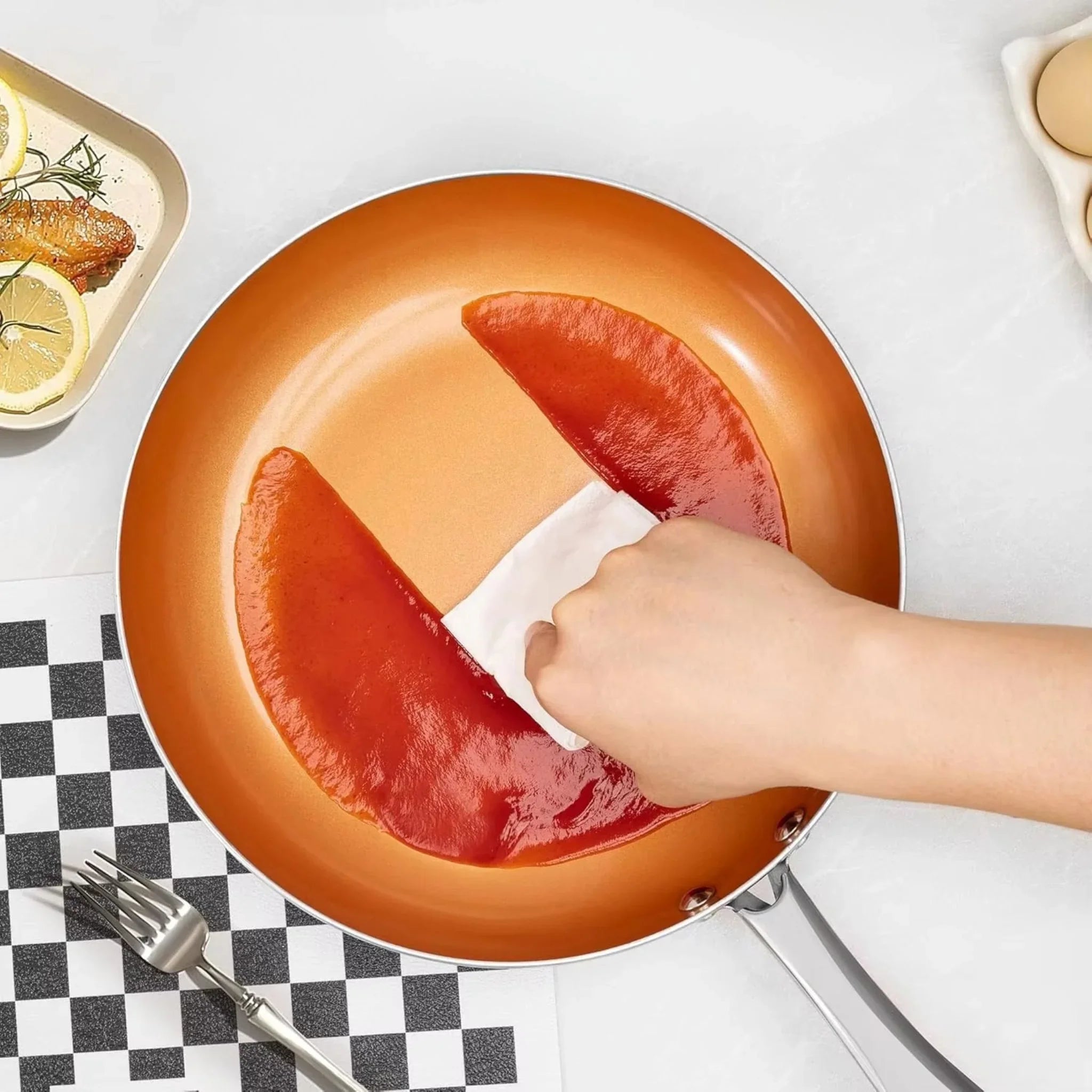 Additionally, the pan is free from harmful chemicals like PTFE, PFOA, and PFOS.