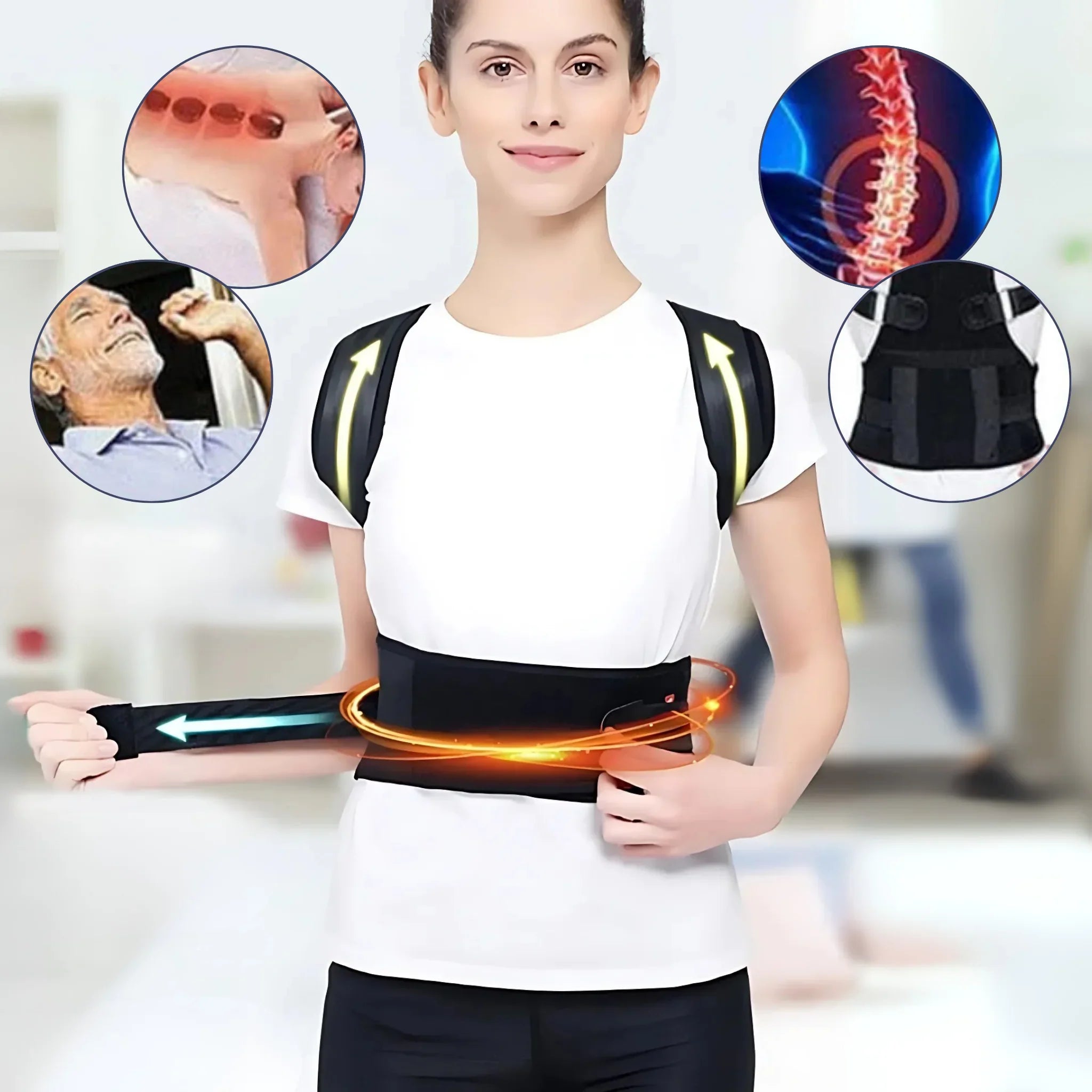 The back brace is suitable for daily posture correction as well as rehabilitation after injuries to the collarbone, shoulders, or upper lumbar spine.