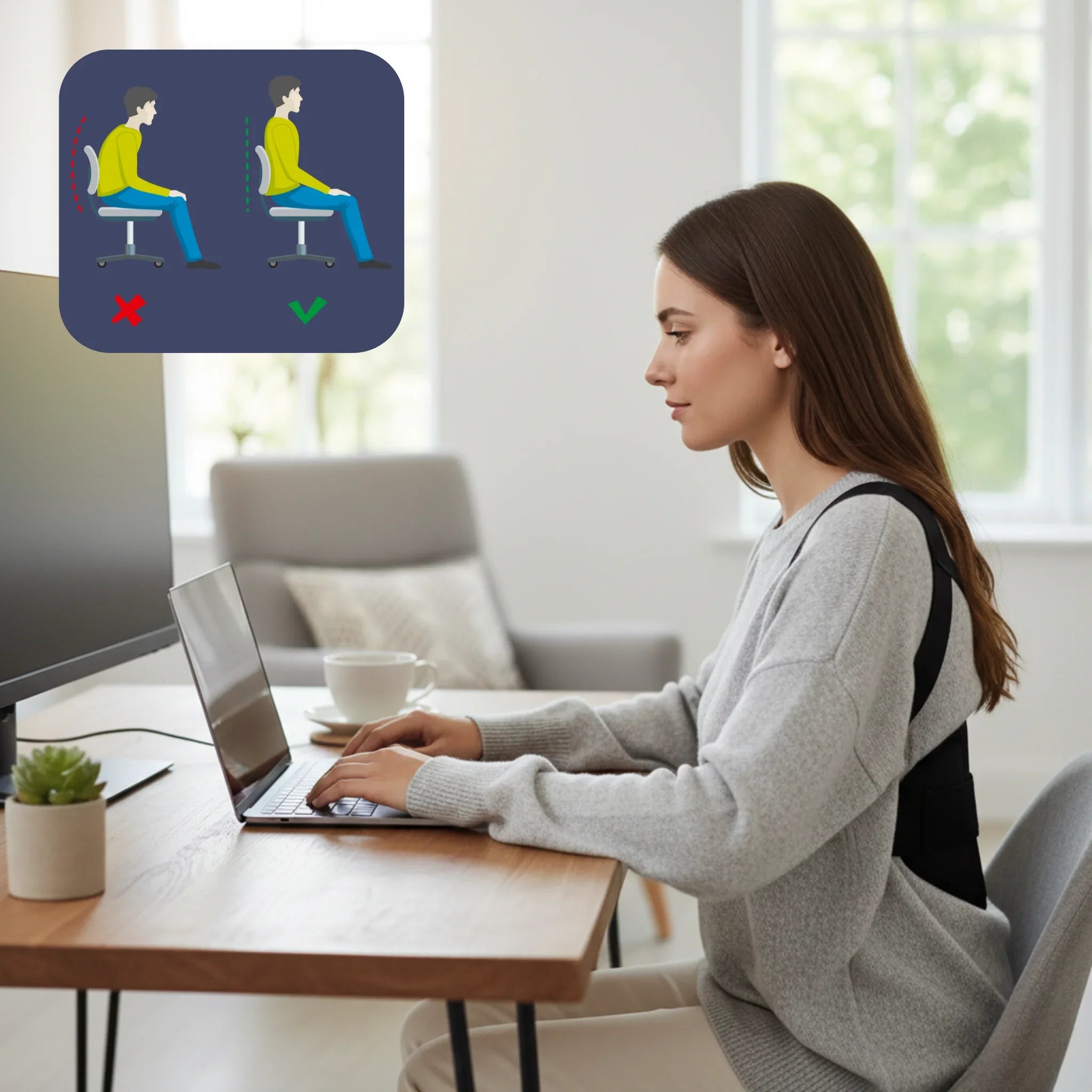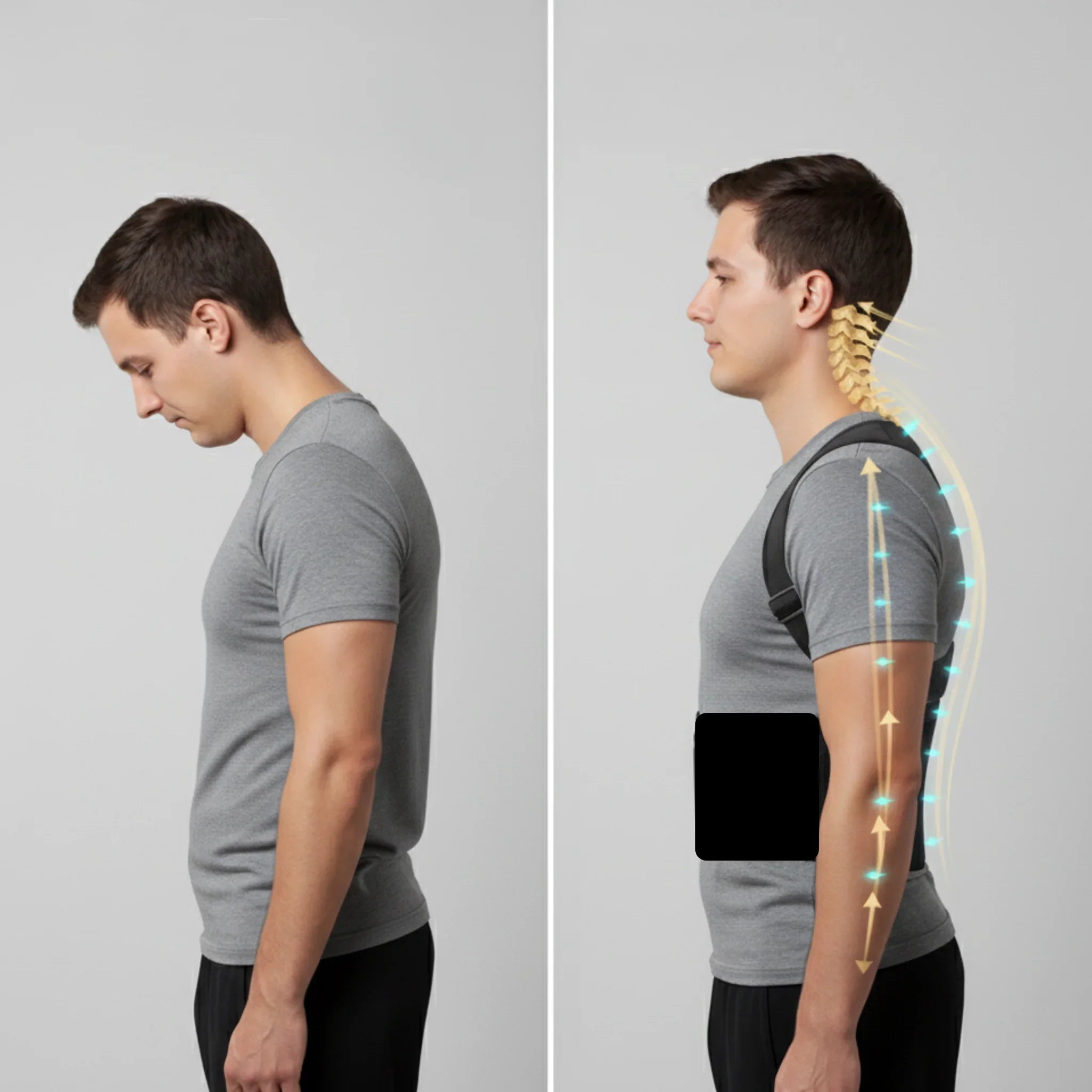 By encouraging proper alignment, it helps train your muscle memory, so your body naturally maintains an upright posture.