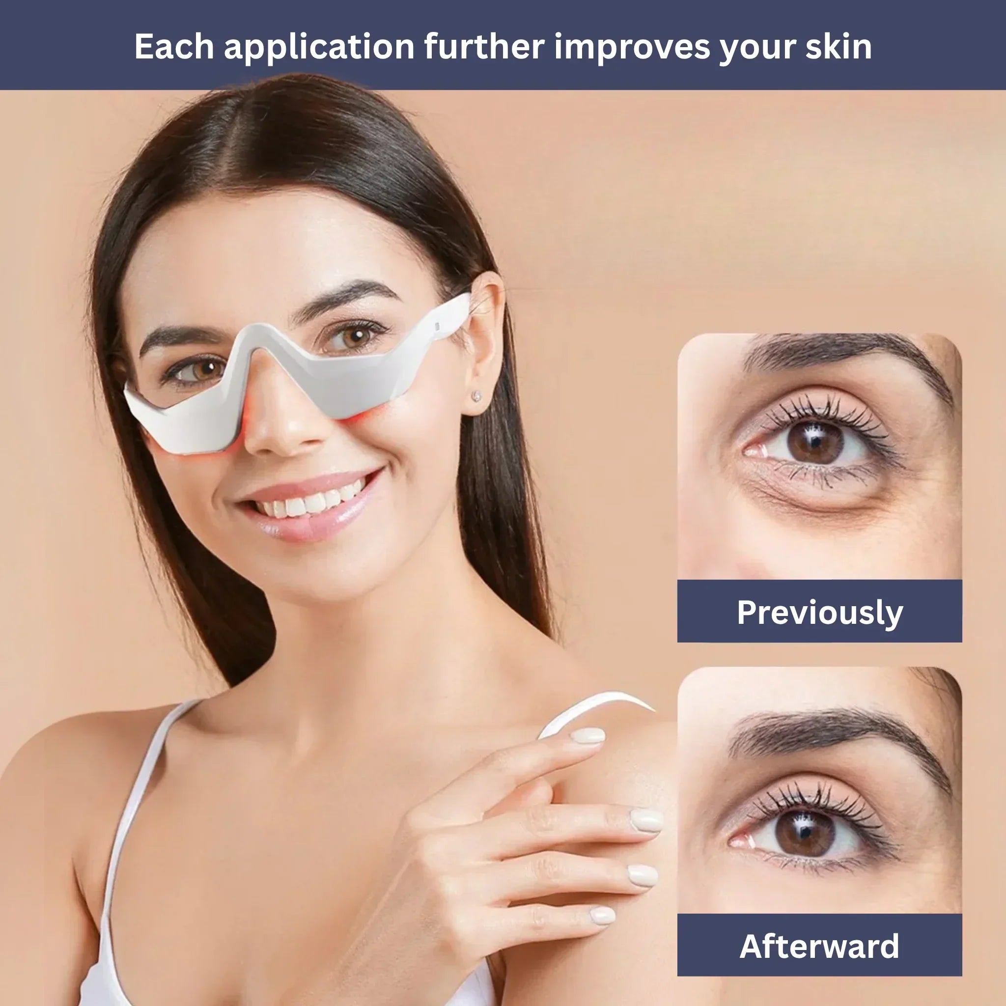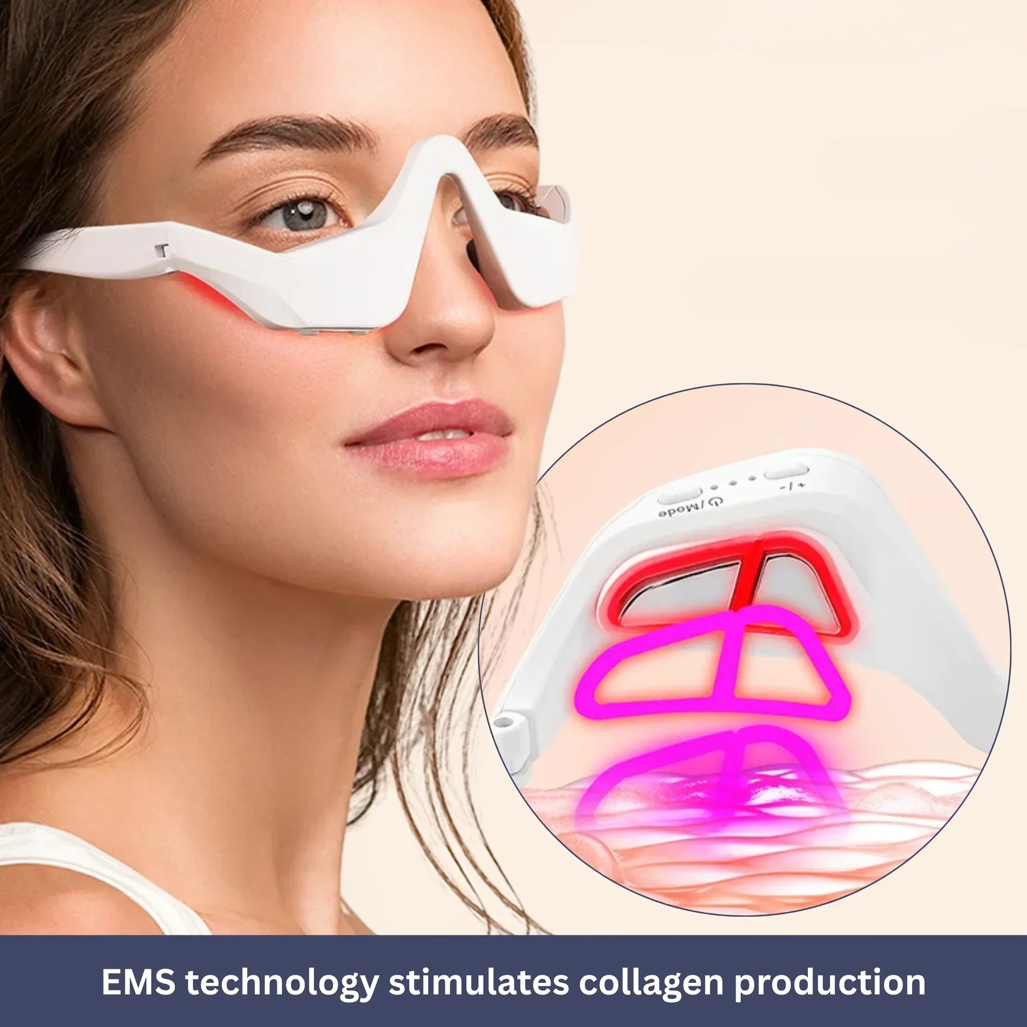 GlowEye combines Electrical Muscle Stimulation (EMS) and red light therapy to fight dark circles, puffiness, and fine lines.