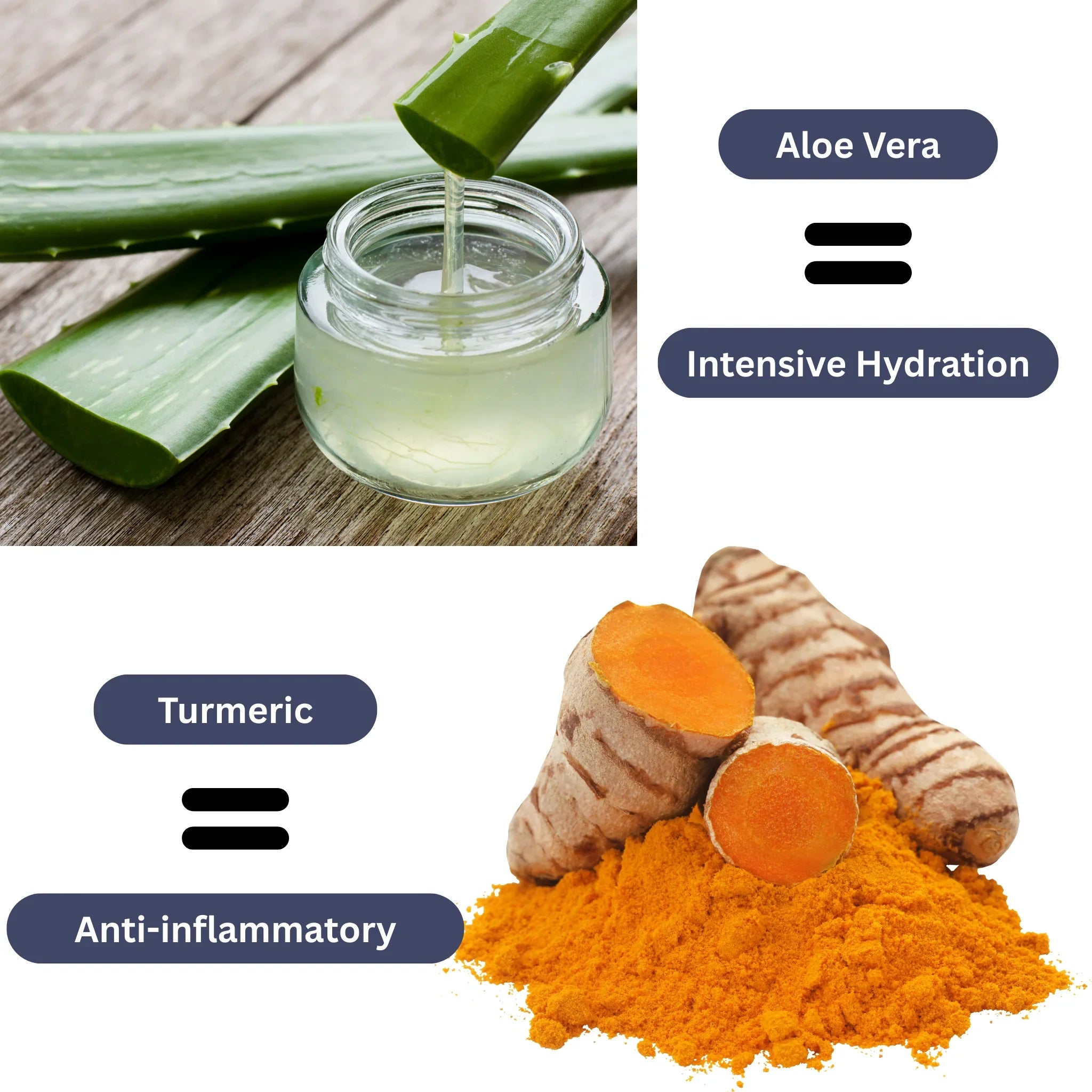 Turmeric acts anti-inflammatory, evens out skin tone, and improves the skin structure.