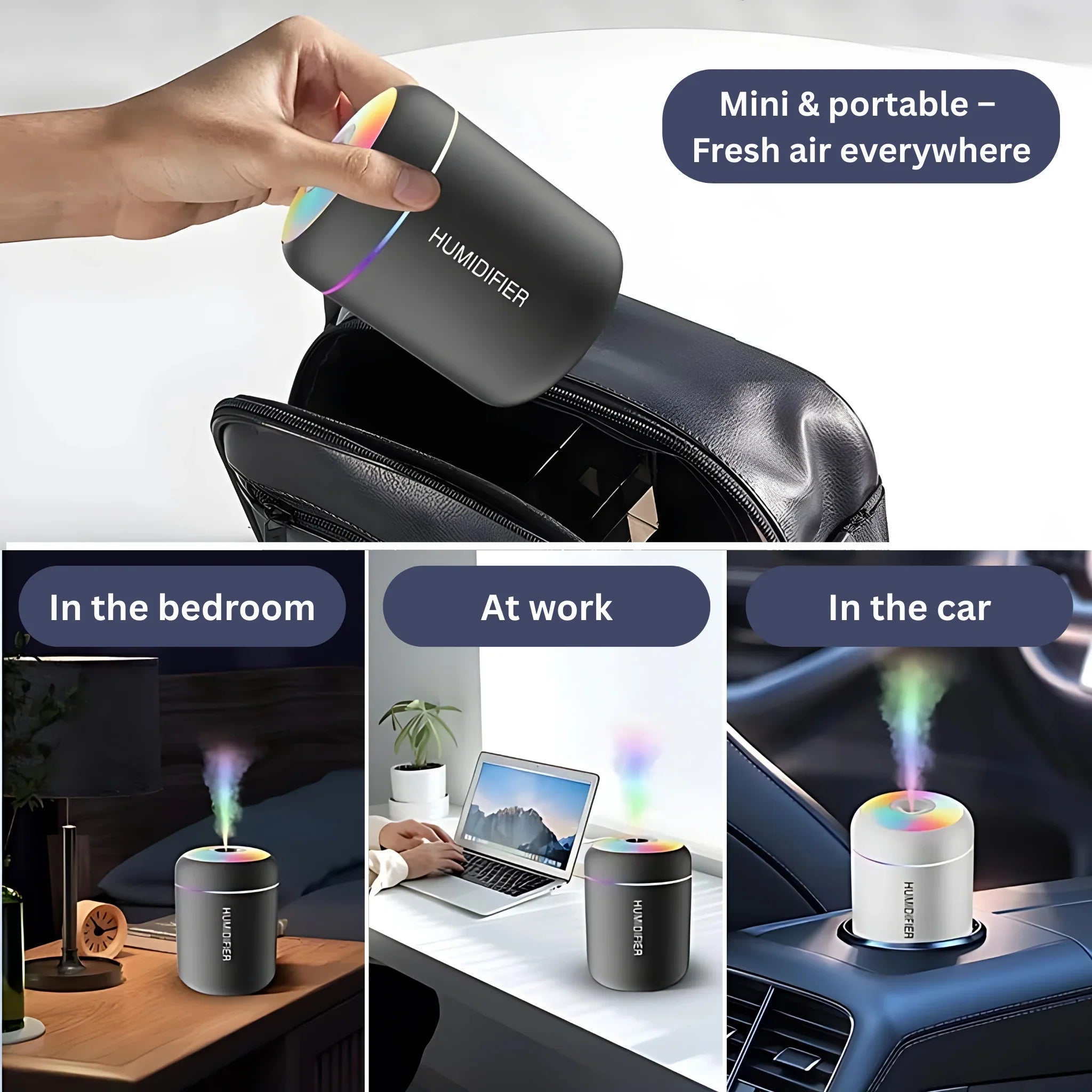 Yes, the humidifier is USB-powered, so you can connect it to a laptop, power bank, or car adapter, making it ideal for travel and on-the-go use.