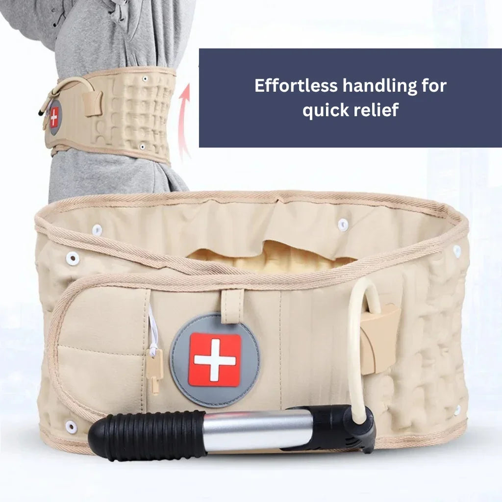 Using the Orthogurt is simple: wrap it around your waist, secure it, and inflate it with the hand pump.