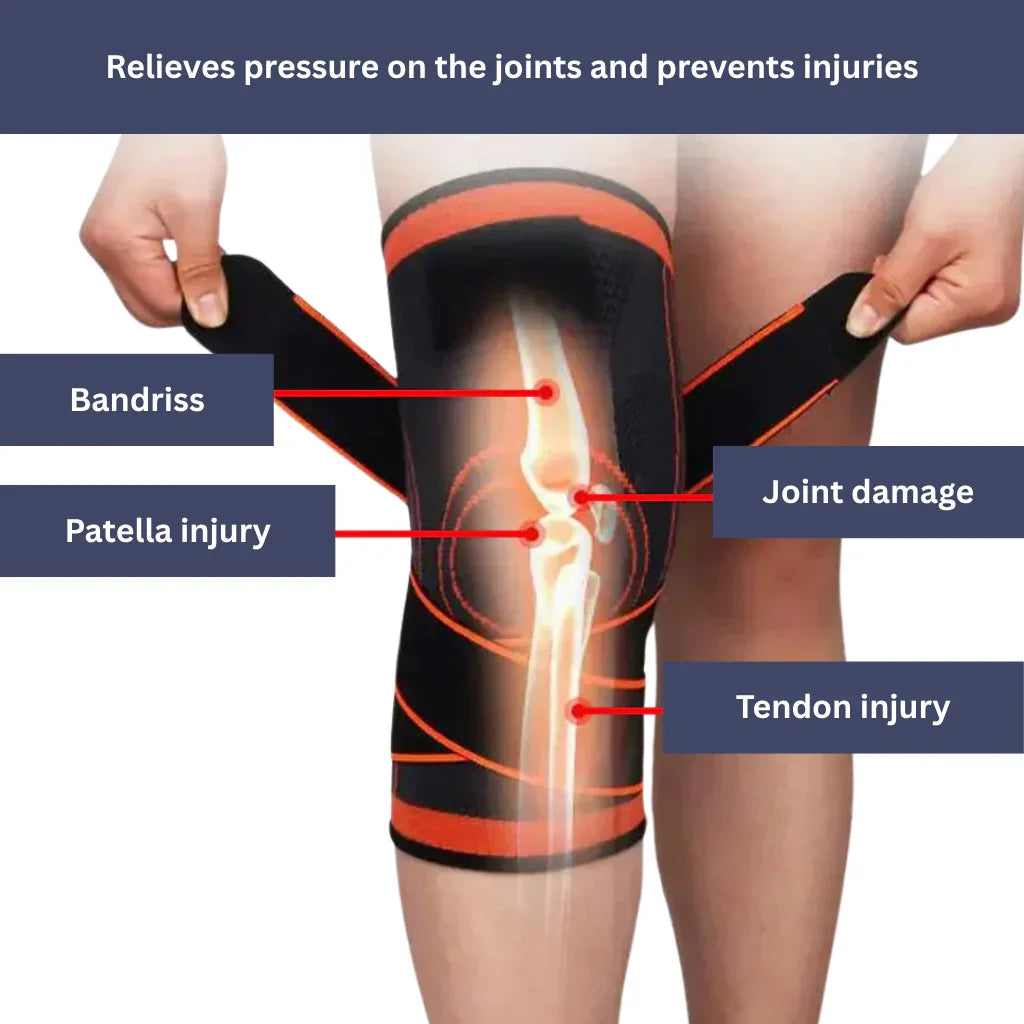The brace helps to relieve pressure on your knee joint and prevent injuries like patellar wear, ligament strains, or tendon damage.