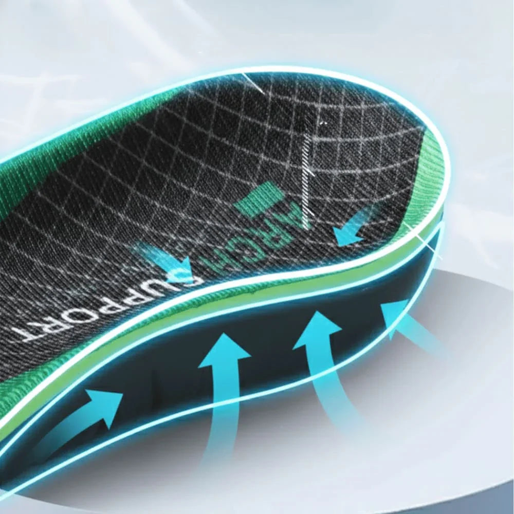 The non-slip EVA base ensures the insole stays firmly in place, while its elastic structure absorbs impact smoothly.