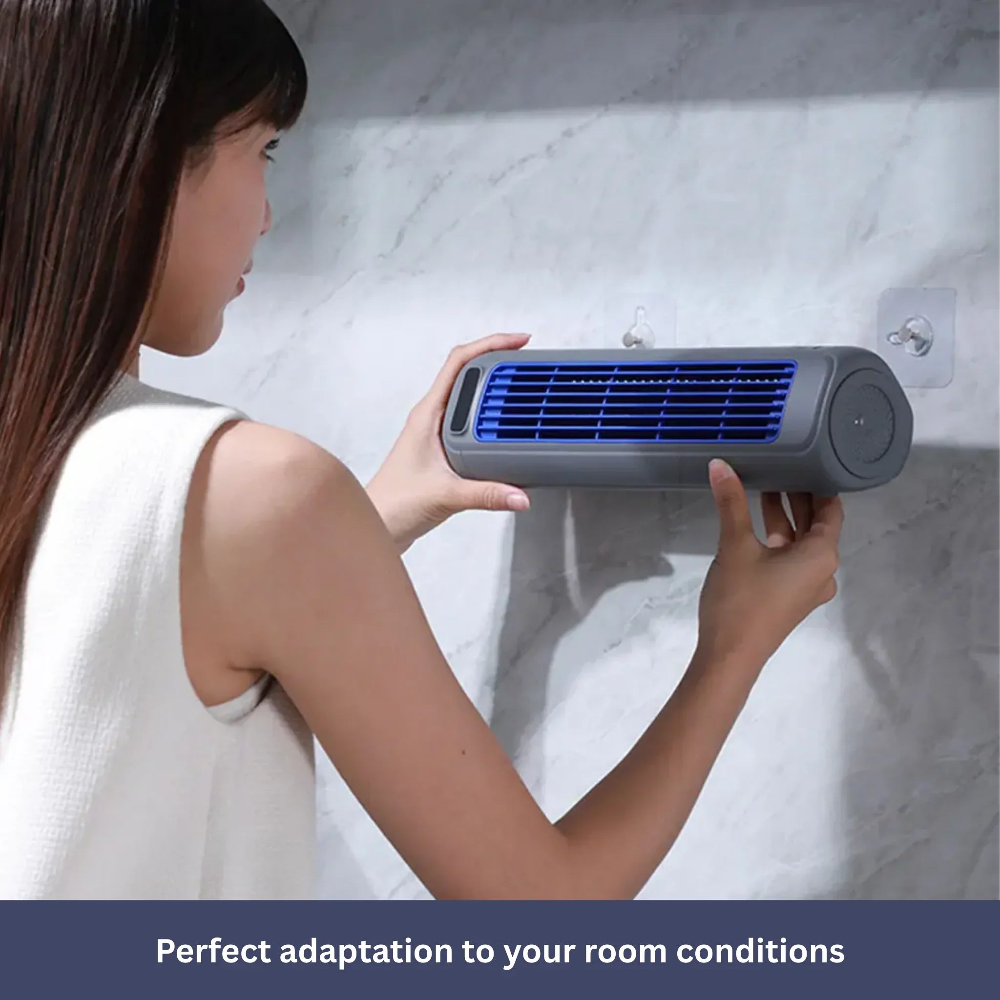 With its compact dimensions of approximately 12.3 x 3.5 x 3.3 inches, the air conditioner is a true lightweight and ideal for home office, bedside table, or camping.