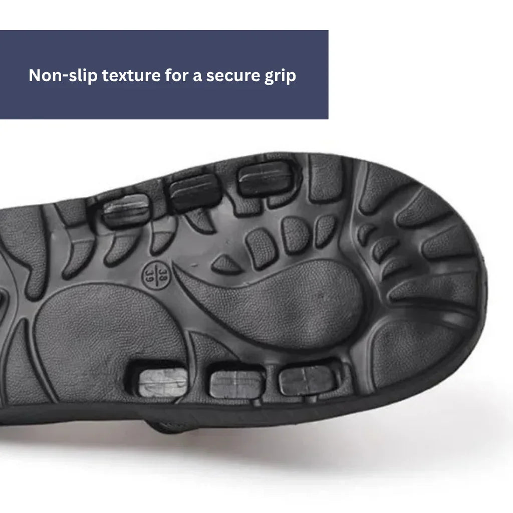 The practical flip-flop design allows for easy on and off, while the non-slip texture ensures extra safety, even on wet surfaces.