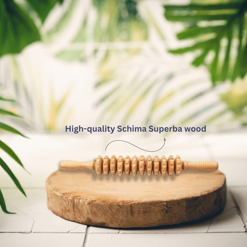 The VitaWood Roller is made from carefully crafted Schima Superba wood, known for its fine grain, durability, and pleasant feel.
