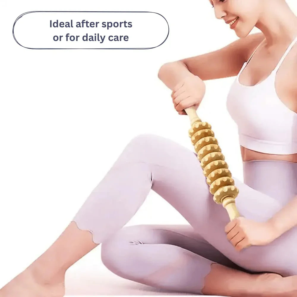 Experience the soothing benefits of targeted massage with the VitaWood Cellulite Roller by GesundPur.